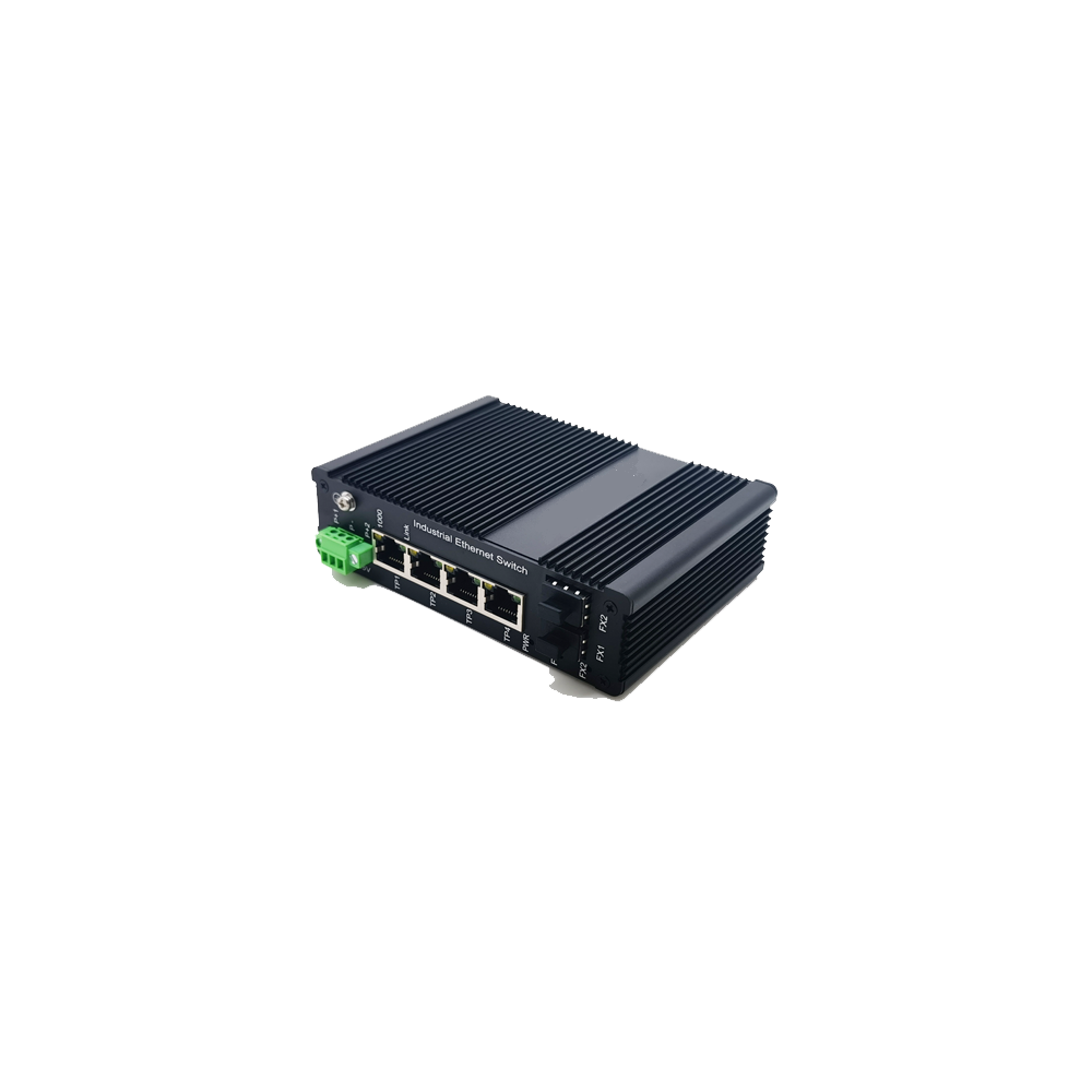 Switch industriel 4 x ports POE+ 802.3AF/AT, 10/100/1000, 2 x ports SFP, alim 230/52V incluse, fixation rail DIN, temperature de fonctionnement -40/+80C°, boitier aluminium renforcé IP40.