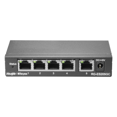 RG-ES205GC 99,60 €Switch Cloud Manageable, 5 ports RJ45 Gigabit, Vitesse des ports 10/100/1000 Mbps, Plug & Play, VLAN/Port Isolation/Loop Detection, Port Speed Limit